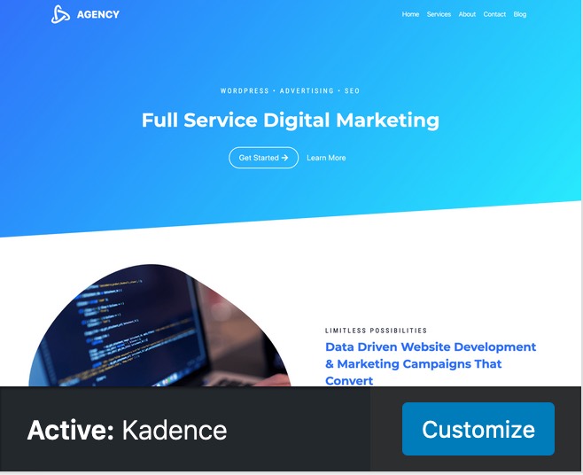 - Kadence theme, which (as of this writing) must be downloaded and installed from https://kadence-theme.com