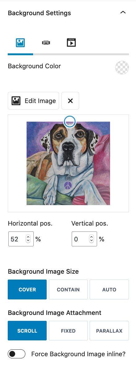 Now set the background image by selecting the Background Image icon in the Row Layout block. Choose an image that can be displayed both horizontally and vertically. A good rule of thumb is to have a horizontal width of 1920 pixels and a vertical width of 1280 pixels. The image size should be in the 300 to 500k pixel range.